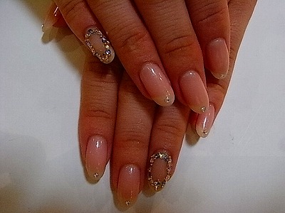 名古屋の栄でネイル//ピンクのストーンでポイントに